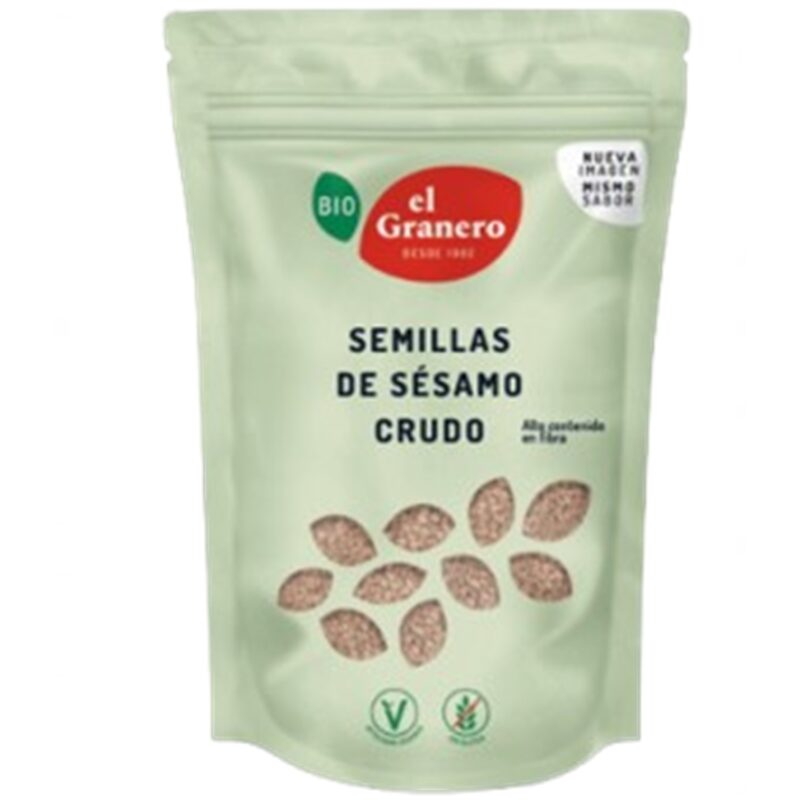 Granero integral Sésamo crudo Eco, alto contenido en fibra, tiamina (vitamina B1), ácido fólico, hierro, magnesio, fósforo, selenio y zinc. Fuente de proteínas, niacina (vitamina B3), vitamina E, calcio y potasio.
